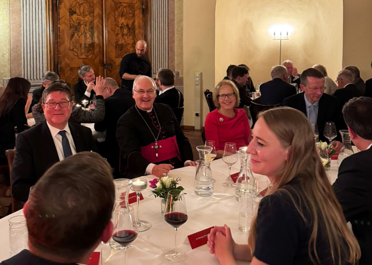 Im feierlichen Rahmen eines Festaktes in seiner Heimatstadt Regensburg würdigte auch Bischof Rudolf Voderholzer, in Vertretung der Kirche, zusammen mit zahlreichen Persönlichkeiten aus Politik und Wissenschaft den Verleger Dr. Weiland. Im Zuge der Feierlichkeiten wurde ihm die imposante Festschrift „Ein Schatz für die Kirche“ überreicht, in der auch zahlreiche Beiträge über unseren Campo Santo Teutonico enthalten sind.